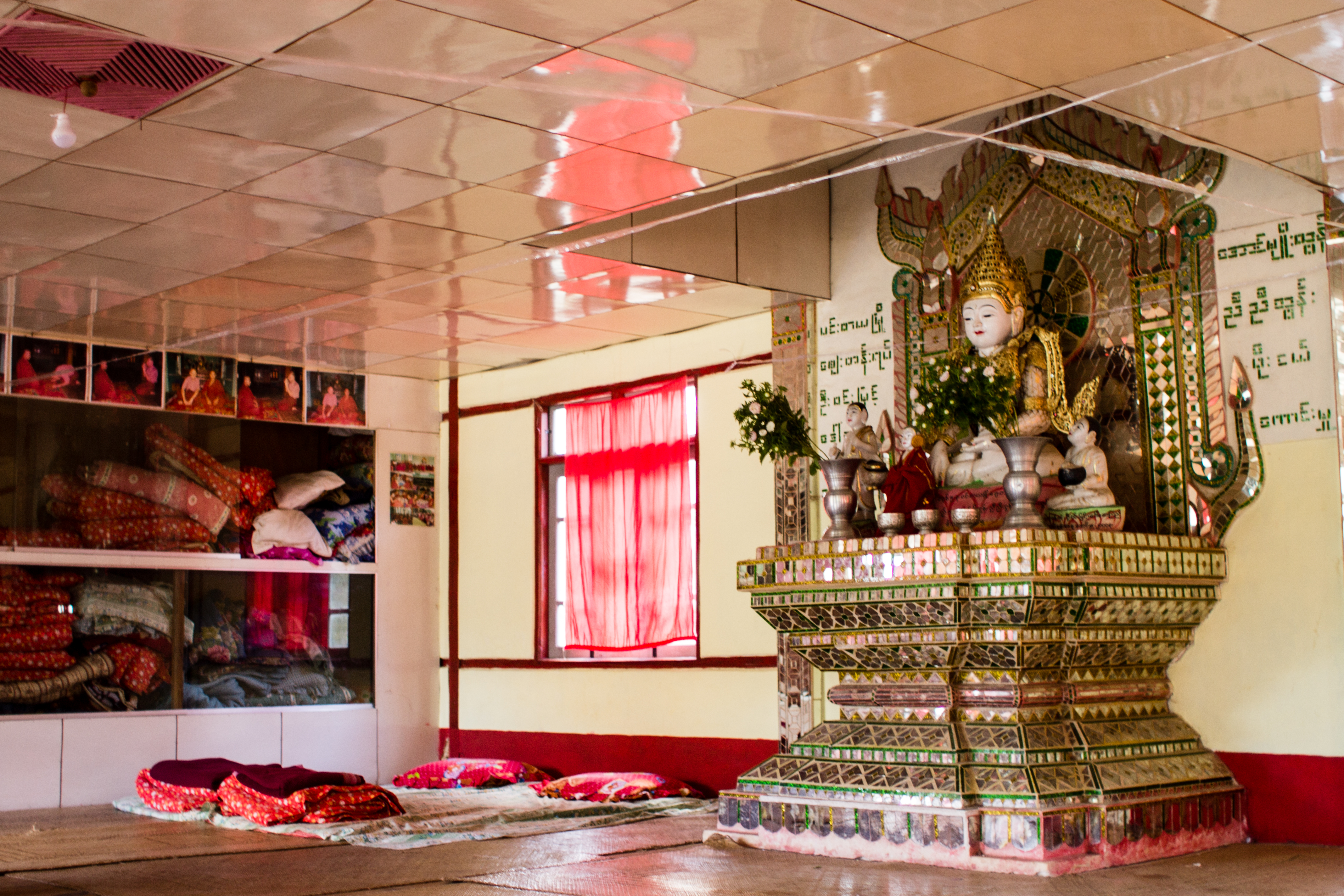 It was one final hour of walking to Kan Hla Kone, our final overnight stop. We were staying in another monastery. We dropped off our belongings and then sat down with the master monk who gave us tea and cookies. The guide who had arranged the trek for the Belgian couple dropped by to check on us, and then acted as a translator between us and the master. We asked about his life, about Buddhism, and we learned monks there can’t eat after noon (hence his smiling and waving on when we had offered the cookie tray to him).